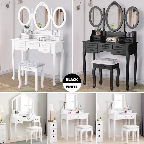 Wood Vanity Makeup Desk Dressing Table Set W Stoo In Home