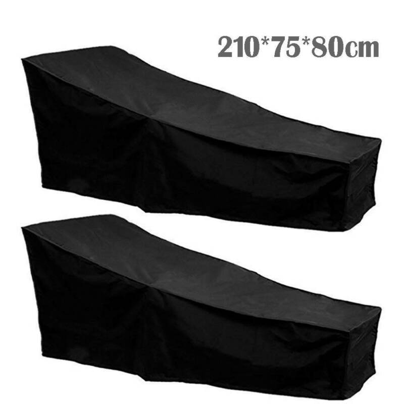 2pcs Black Waterproof Sunbed Sun Lounger Garden Furniture Cover