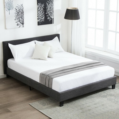 Full Size Metal Bed Frame Linen Headboard Upholste In Home