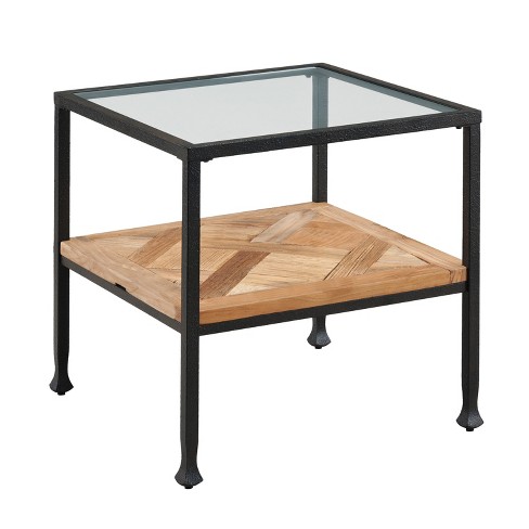 Yvonne Reclaimed Wood End Table With Glass Top Rustic Black With