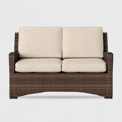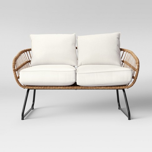 Allen Roth Mcaden Wicker Outdoor Loveseat With Cushion And Steel