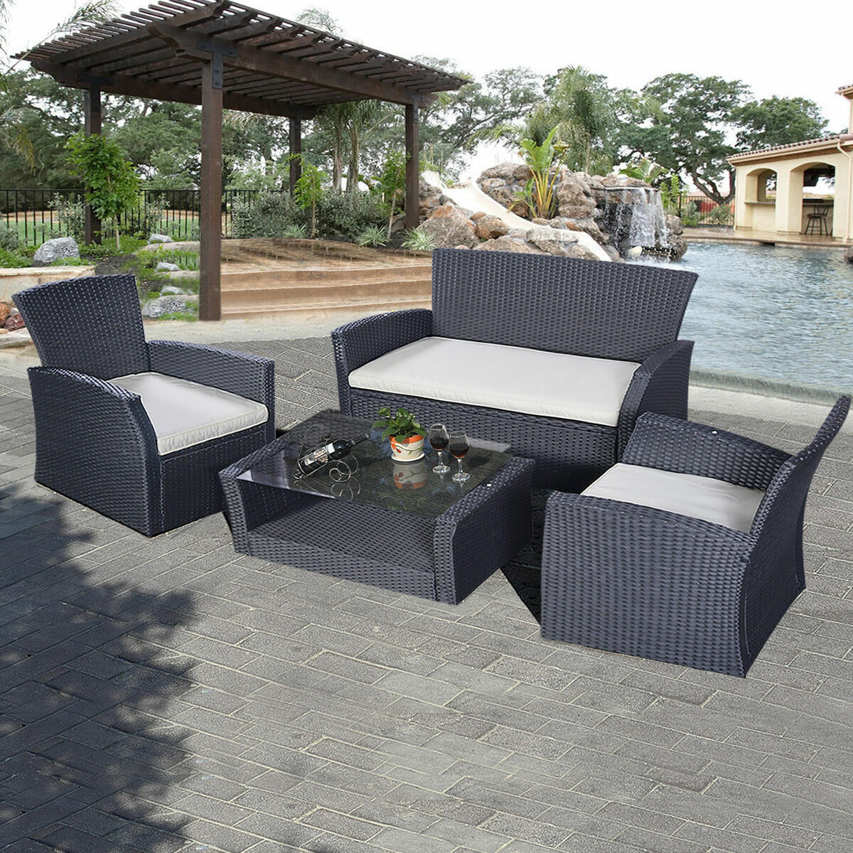 Giantex 4 Pc Rattan Patio Furniture Set Garden Lawn Sofa Cushioned