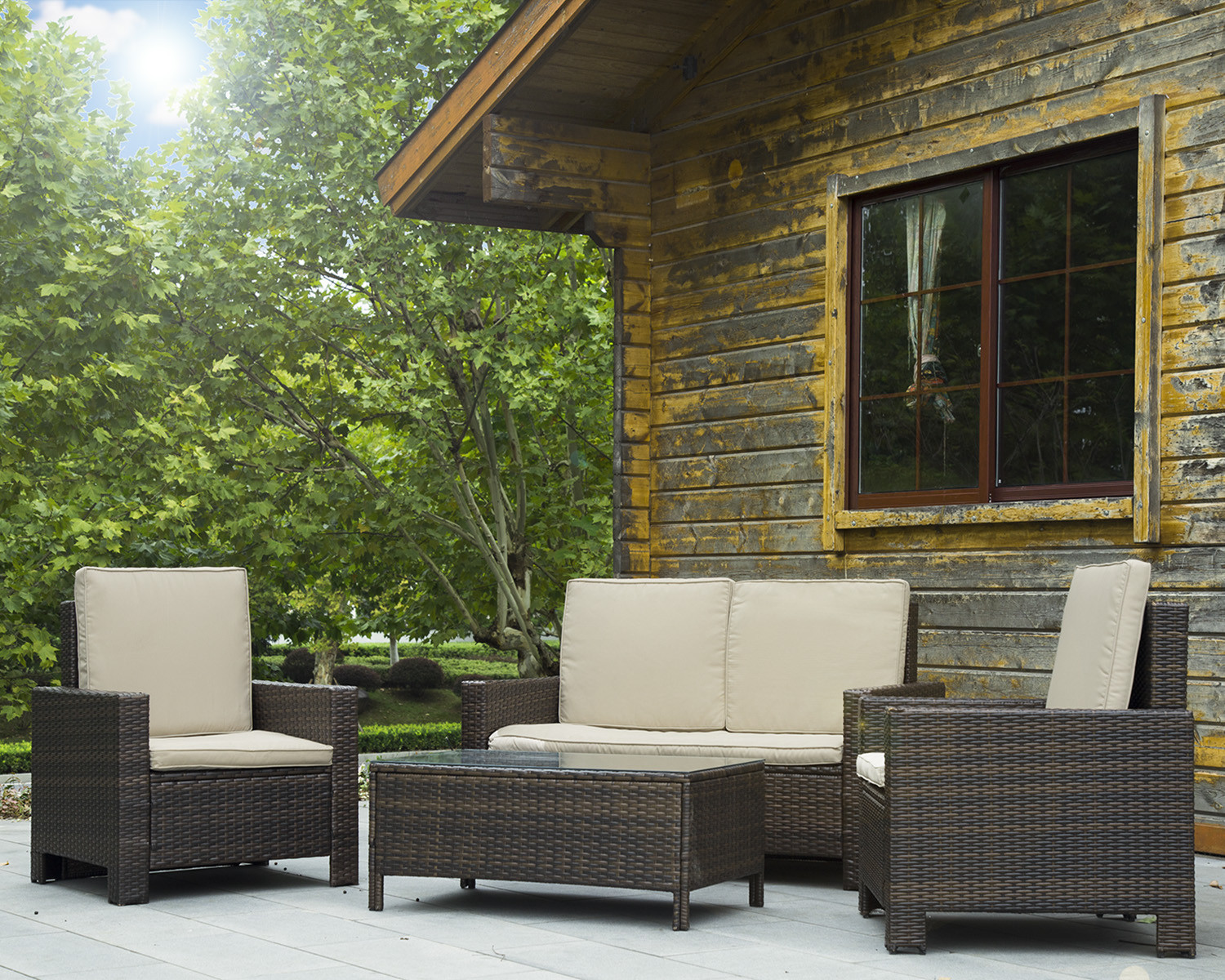 All Weather Garden Furniture Outdoor Wicker Patio 4 Pc Sofa Set