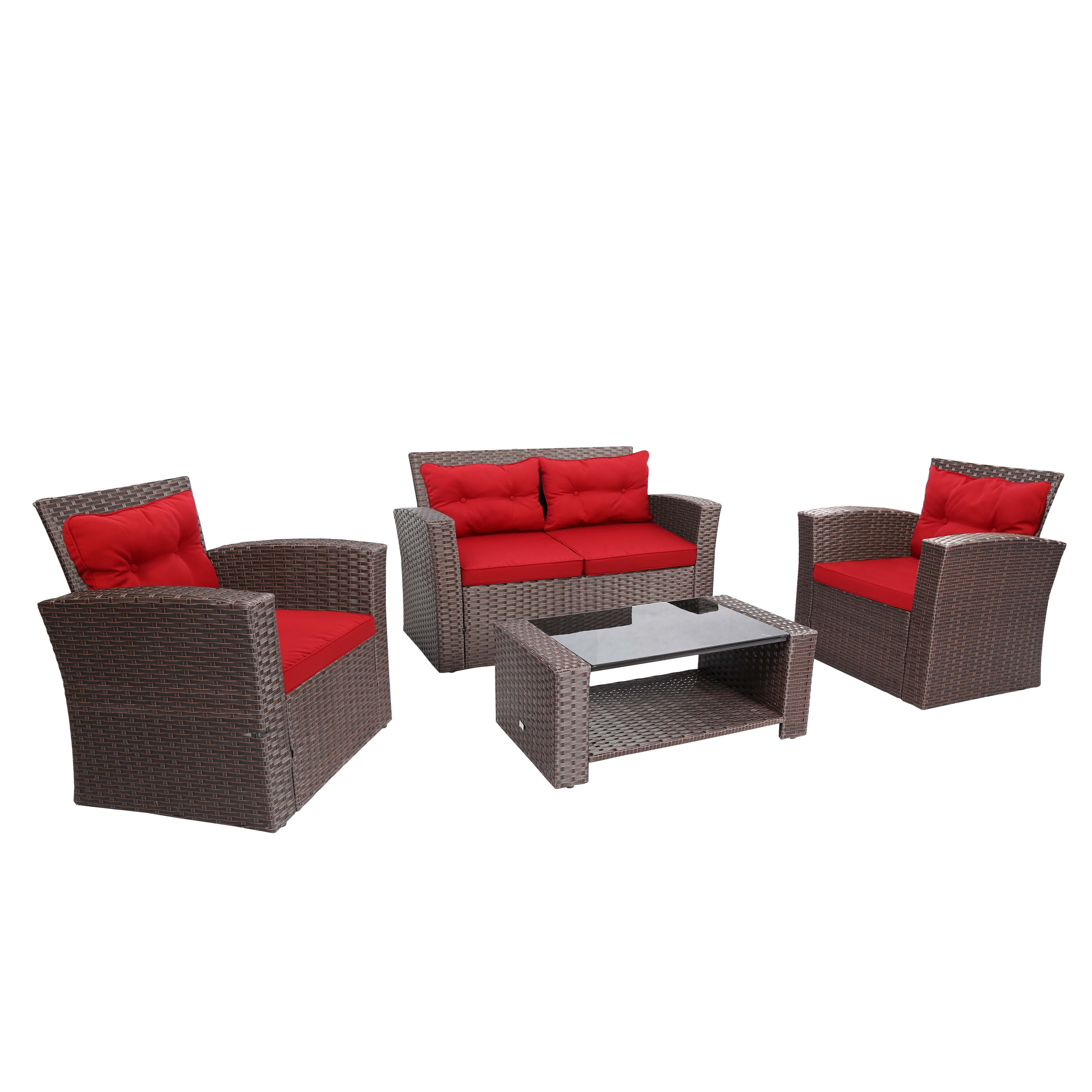 Patioroma Outdoor Furniture Set Wicker 4 Piece Sectional Sofa Set