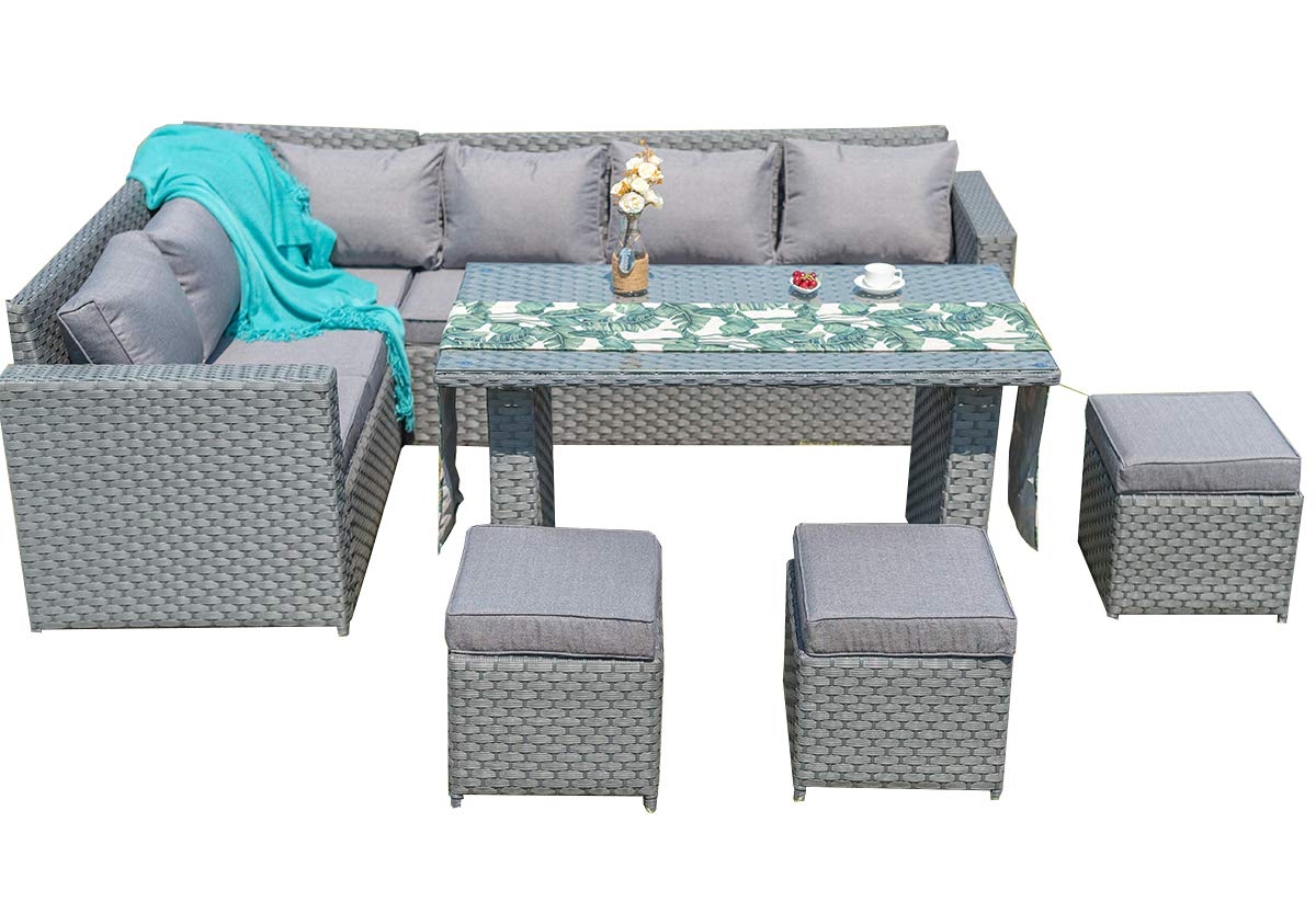 Grey Rattan Garden Furniture Corner Sofa With Dining Table Amazon