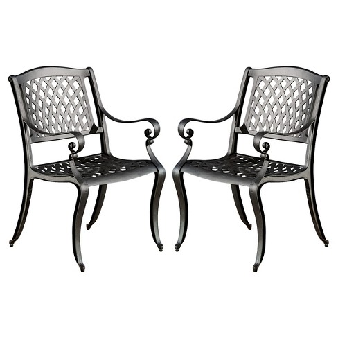 Hallandale Set Of 2 Cast Aluminum Patio Chairs Black Sand