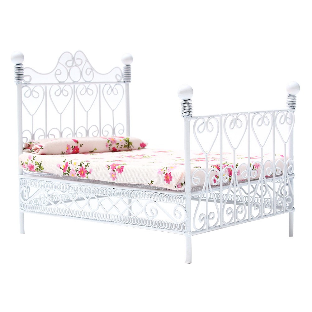 1 12 Dollhouse Miniature Metal European Double Bed Bedroom