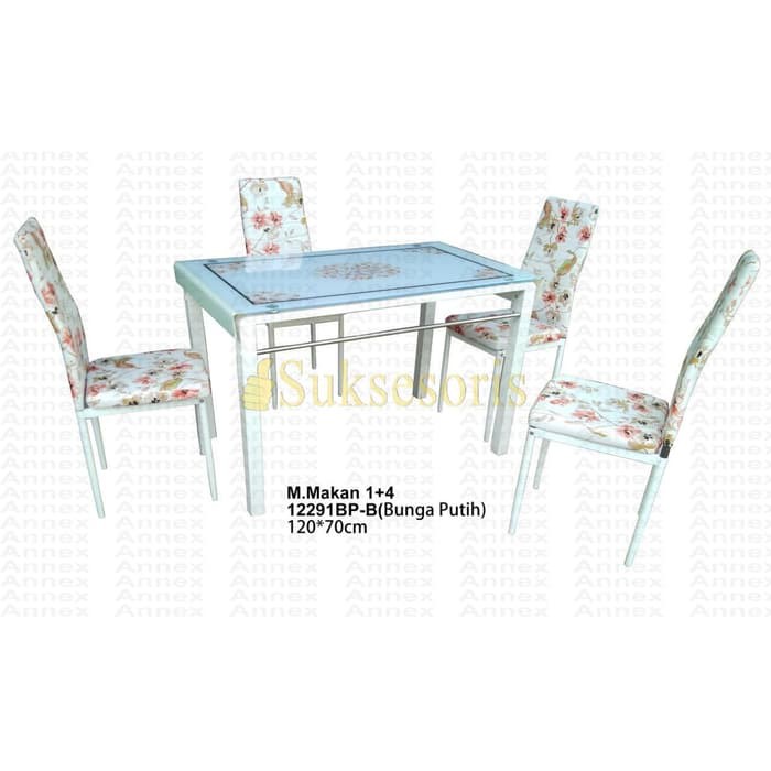 Meja Makan Kaca Motif Bunga 4 Kursi Kaki Besi Shopee Indonesia