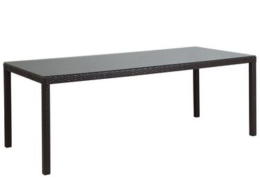 Rattan Garden Dining Table Wicker Outdoor Glass Top 220 Cm