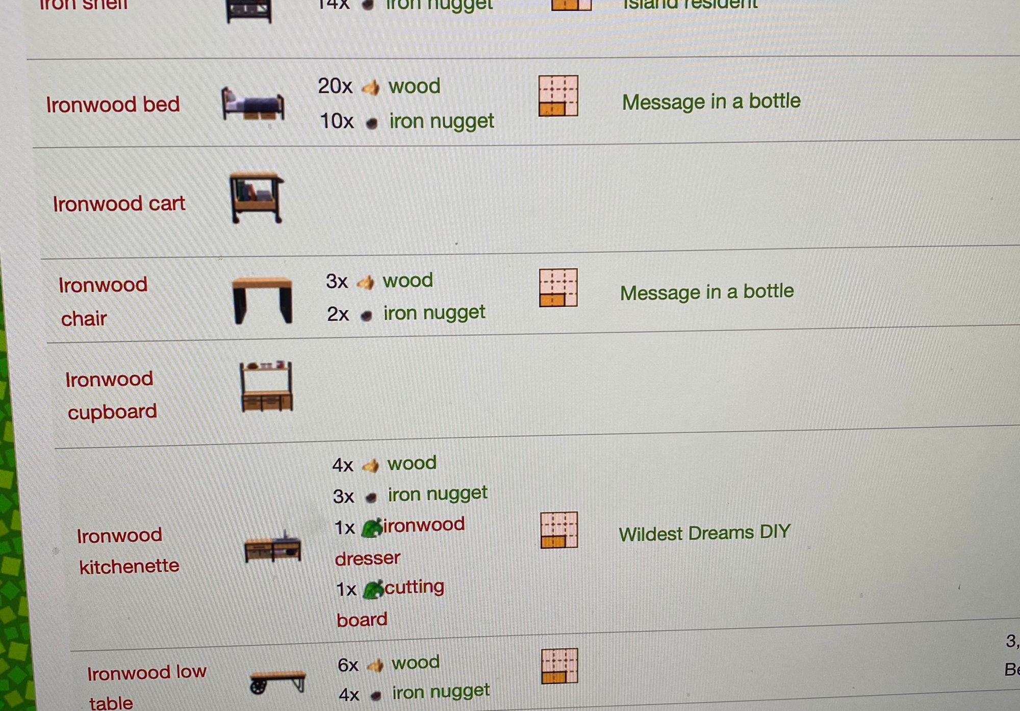 To make an ironwood kitchenette i need. How do i learn the ironwood dresser and cutting board crafting recipes. New horizons switch acnh.