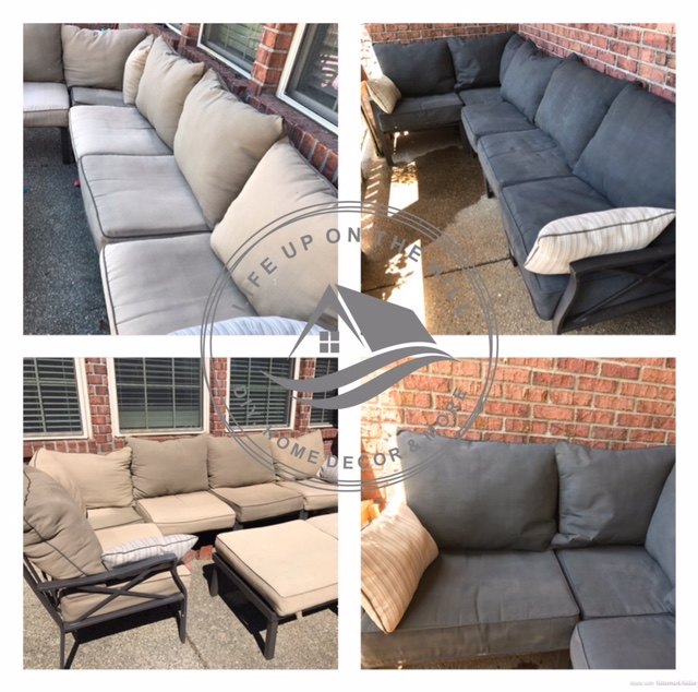 Outdoor furniture makeovers. The beautiful lighting completes it adding a homey glow. The best part they were all done with a homeright paint sprayer.
